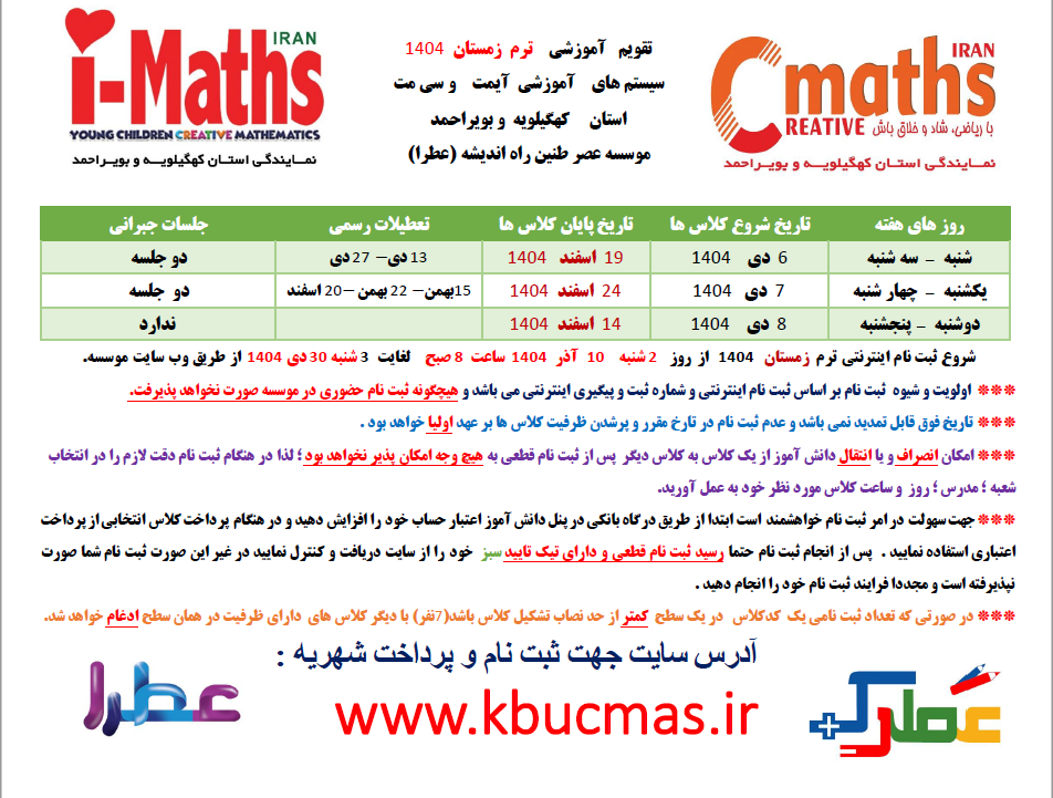 تقویم آموزشی ترم زمستان 1404 آیمت و سی مت استان کهگیلویه و بویراحمد
