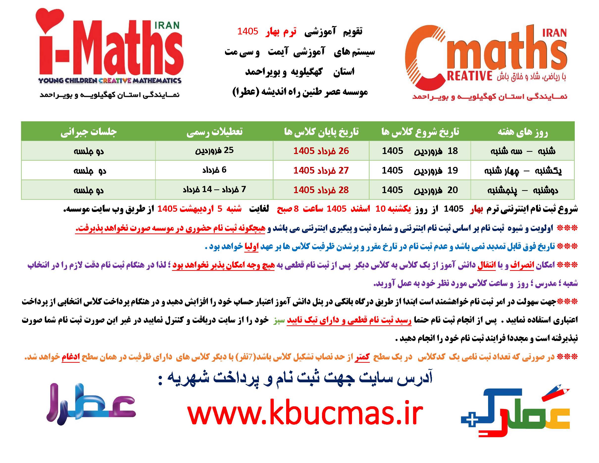 تقویم آموزشی ترم بهار 1405 آیمت و سی مت استان کهگیلویه و بویراحمد